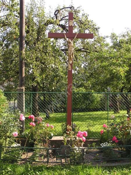 celkový pohled na kříž při jehož patě je položen základní kámen nikdy nepostavené kaple v Kunčičkách u Bašky