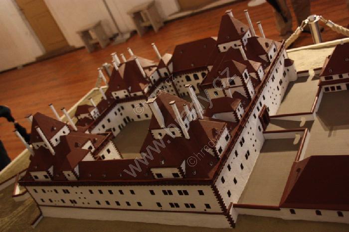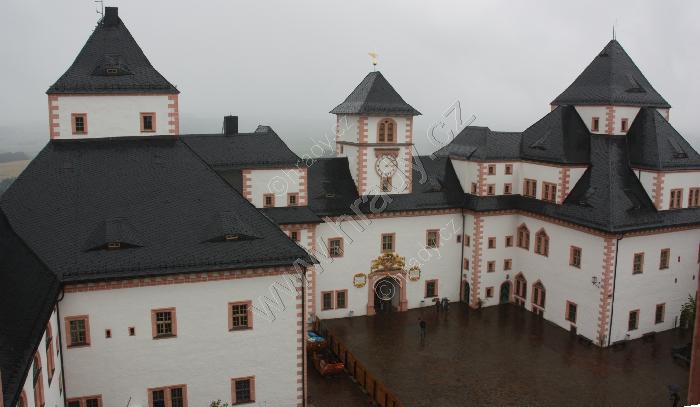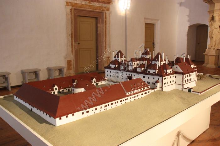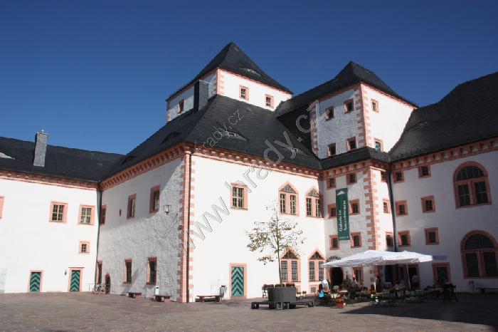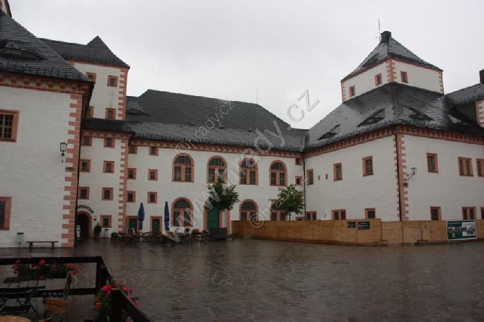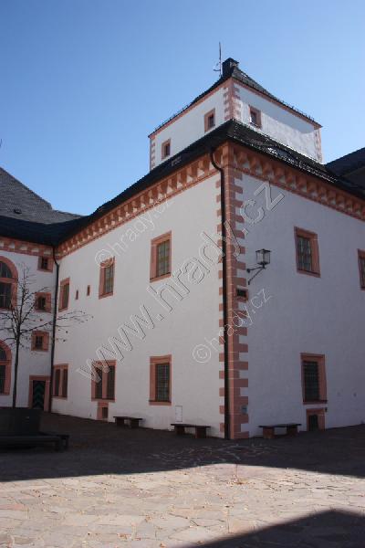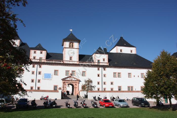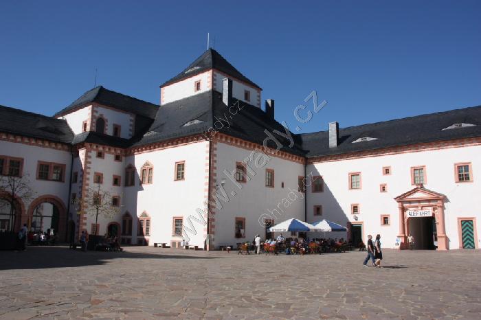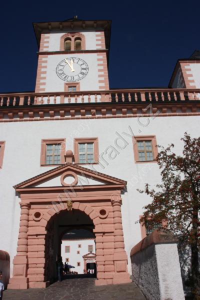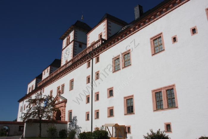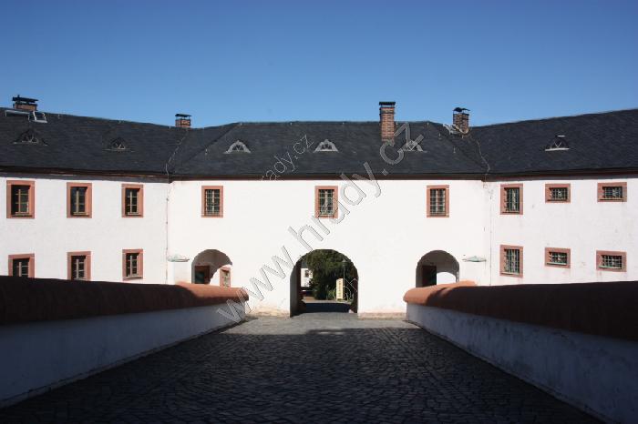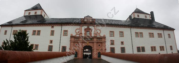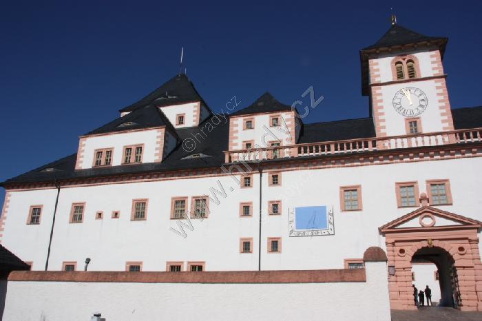 Jižní průčelí hlavní zámecké budovy od studničního stavení (Brunnenhaus)