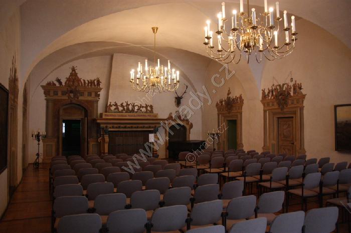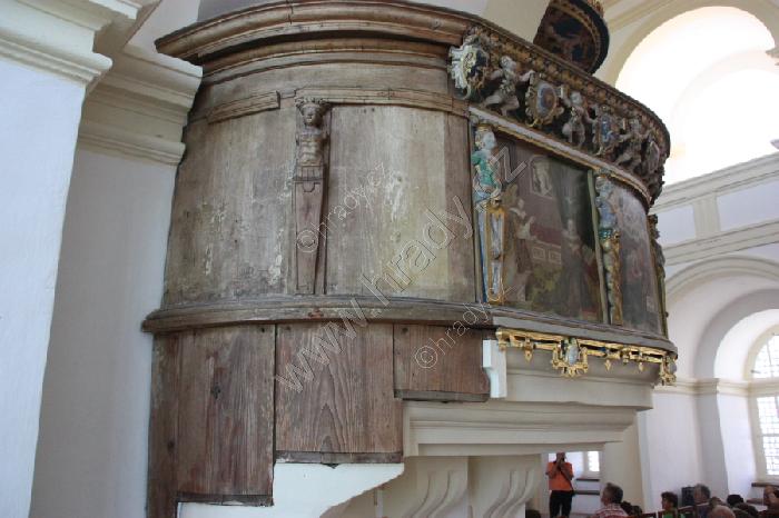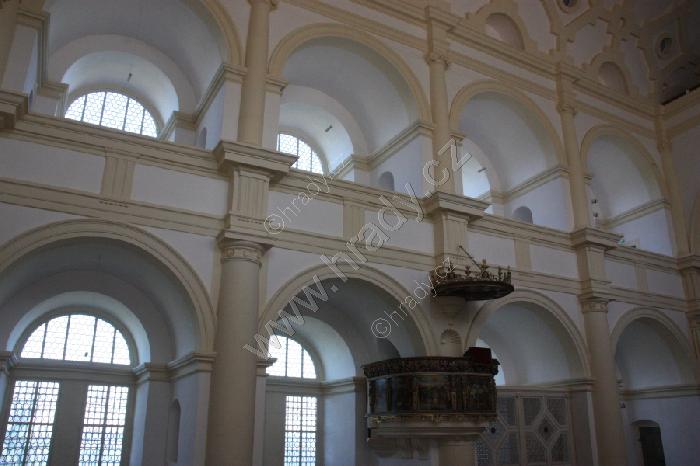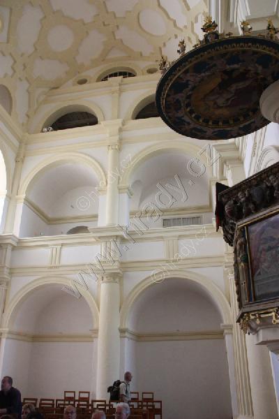Zámecký kostel: pohled na západní stěnu s kurfiřtskou oratoří (v I. patře)