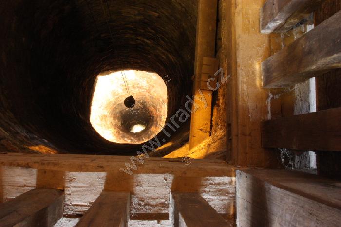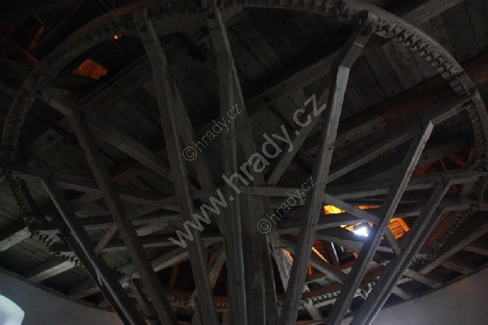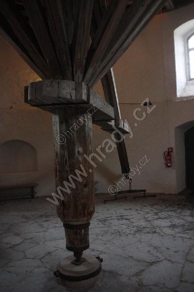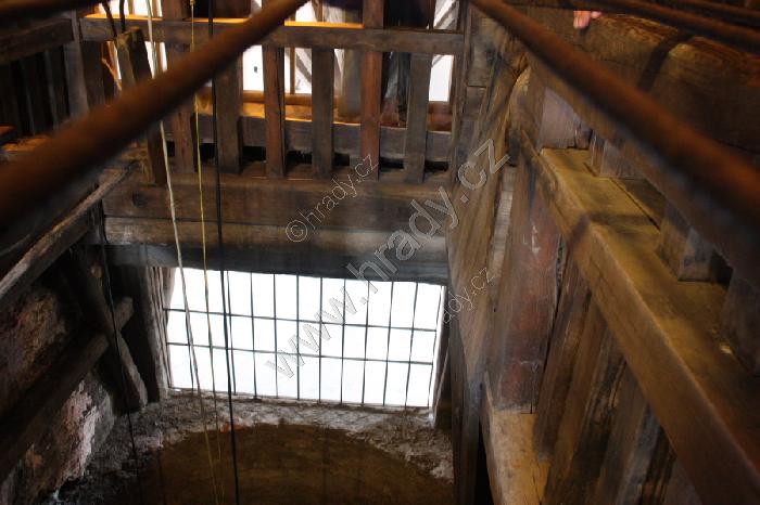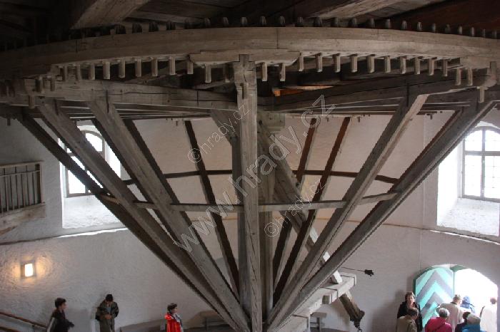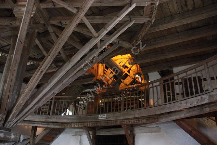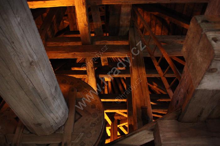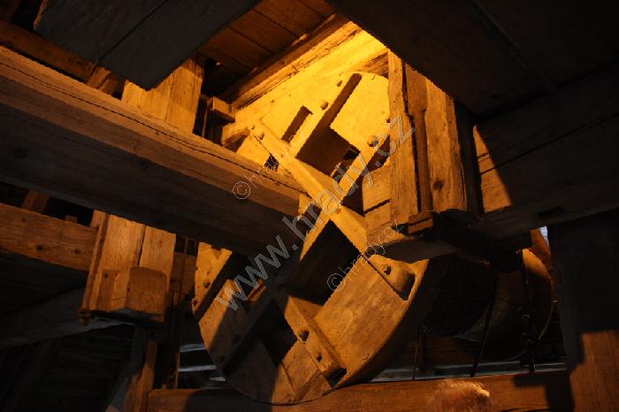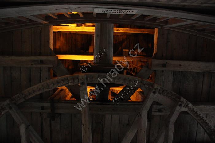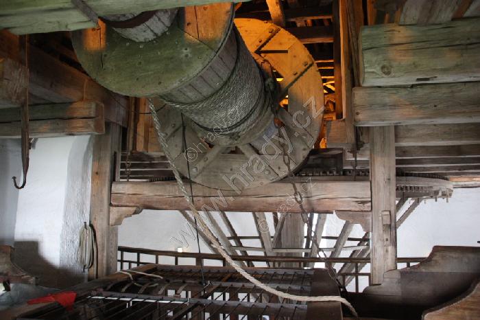 Převodové kolo mezi rumpálem a hřídelí okovu