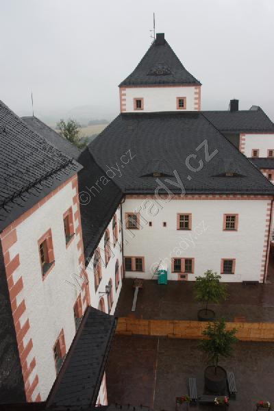 Zámecký kostel a Kuchyňský dům z vyhlídkové věže