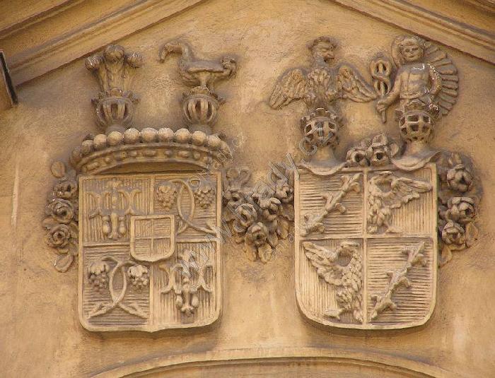 Erb Larisch - Mönnichů nad hlavním průčelím