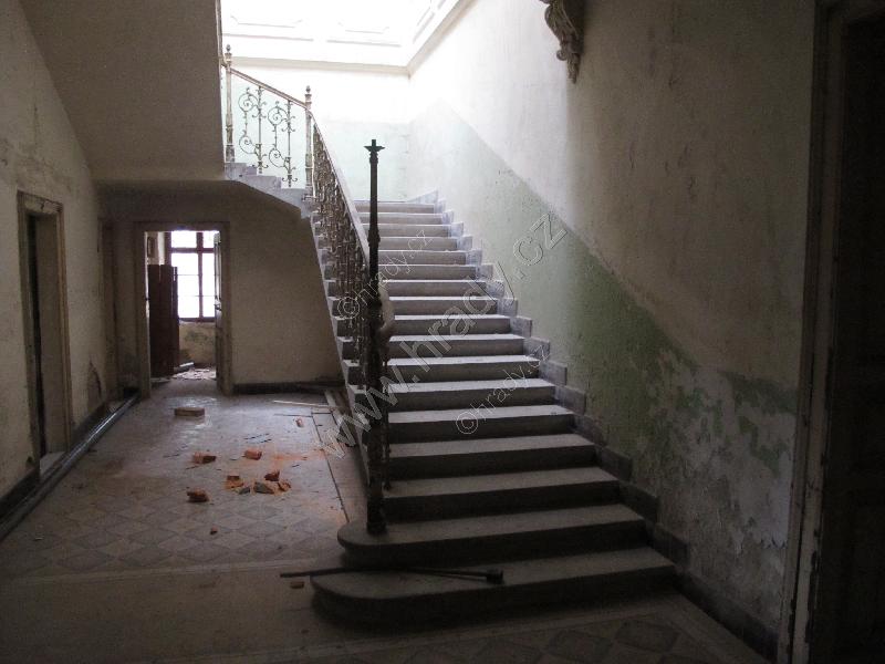zámecké schodiště s původním litinovým zábradlím