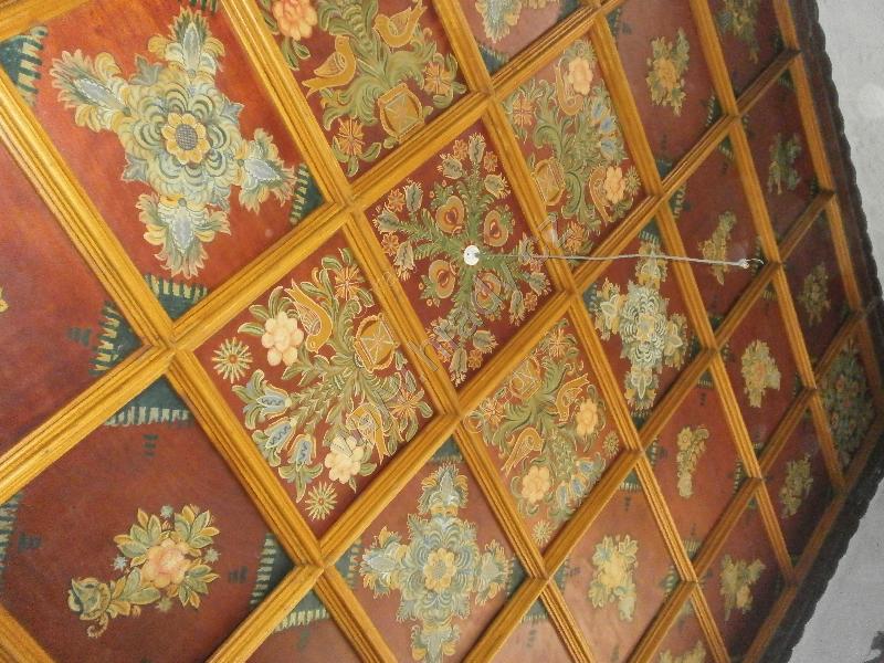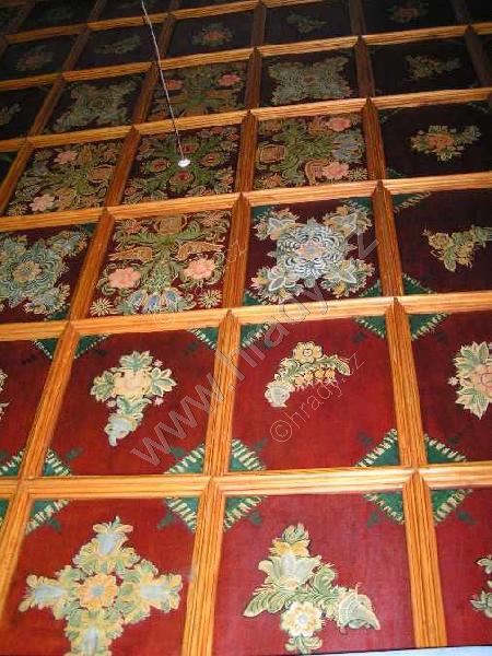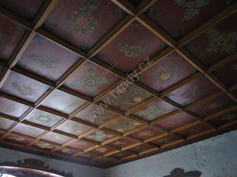 dřevěný malovaný strop místnosti v přízemí