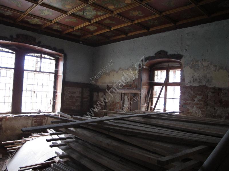 nejzachovalejší část na zámku - malebně nádherně vyvedený strop v jedné z místností