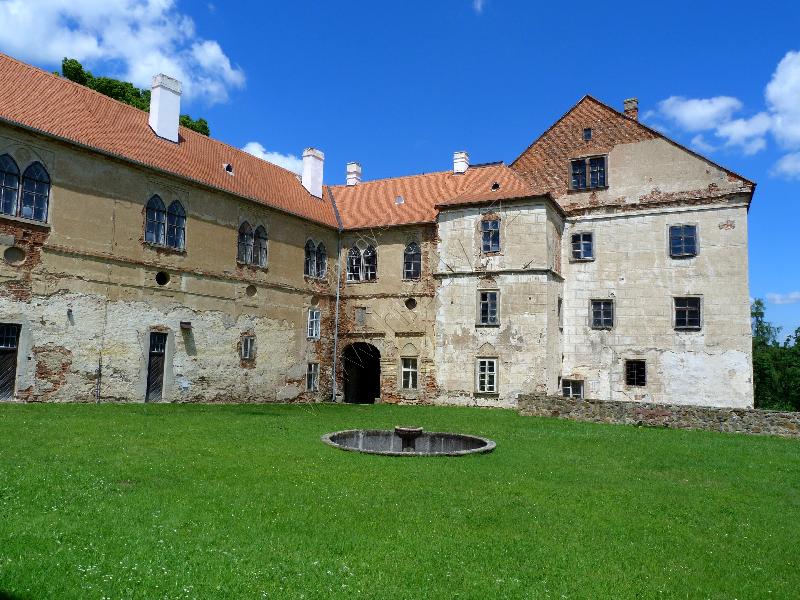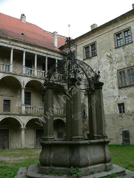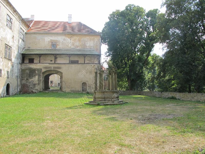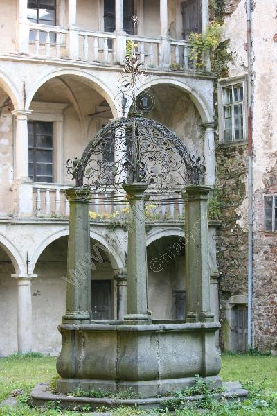 Park hradu/zámku - a studna, stále v ní je voda. je to prakticky jediné co je veřejnosti stále přístupno, park.