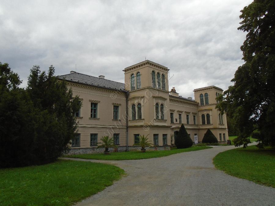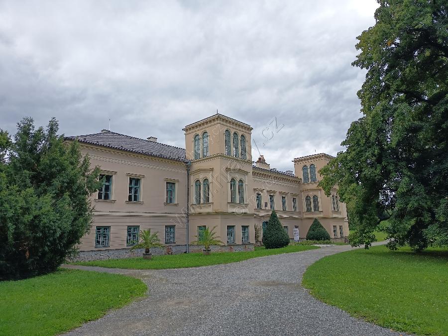 Čechy pod Kosířem - zámecký park, v pozadí zámecká rozhledna