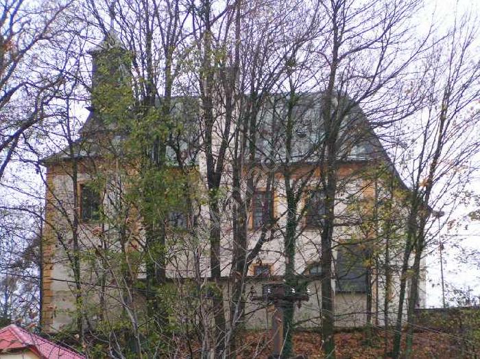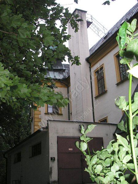 východní křídlo zámku s přestavěnou věžicí v pozadí a kotelnou v popředí