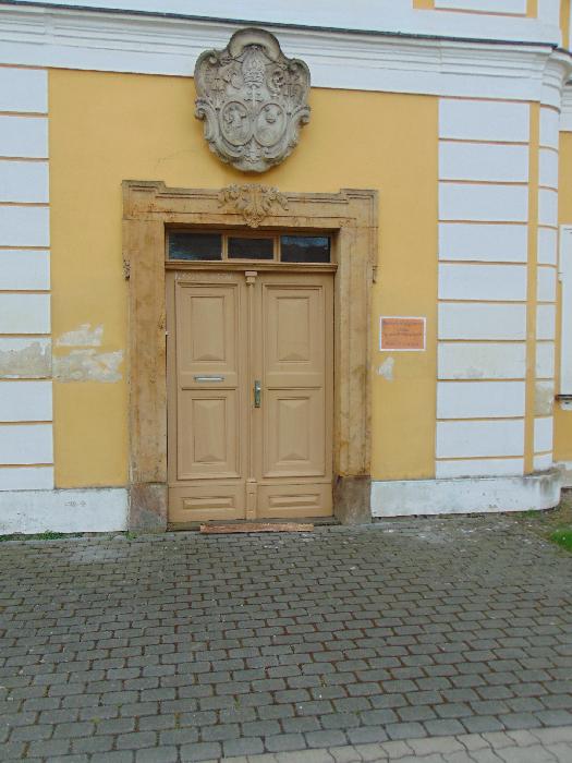 Vstupní portál s erbem opata Pavla Ferdinanda Václavíka