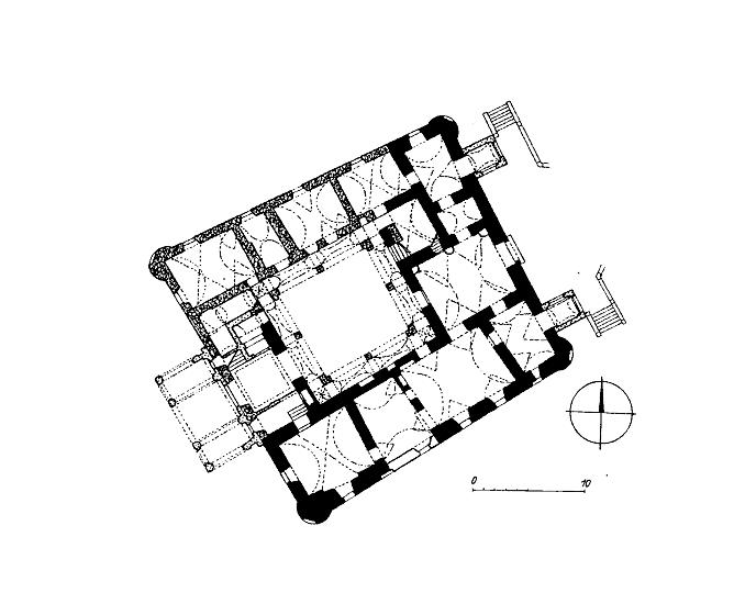 černě zdivo gotické, zrněně renesanční a raně barokní, tečkovaně mladší