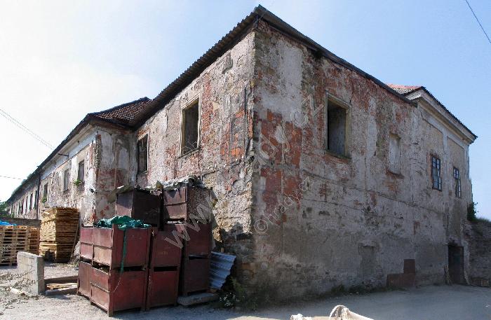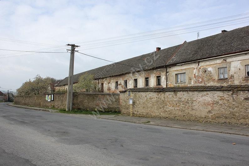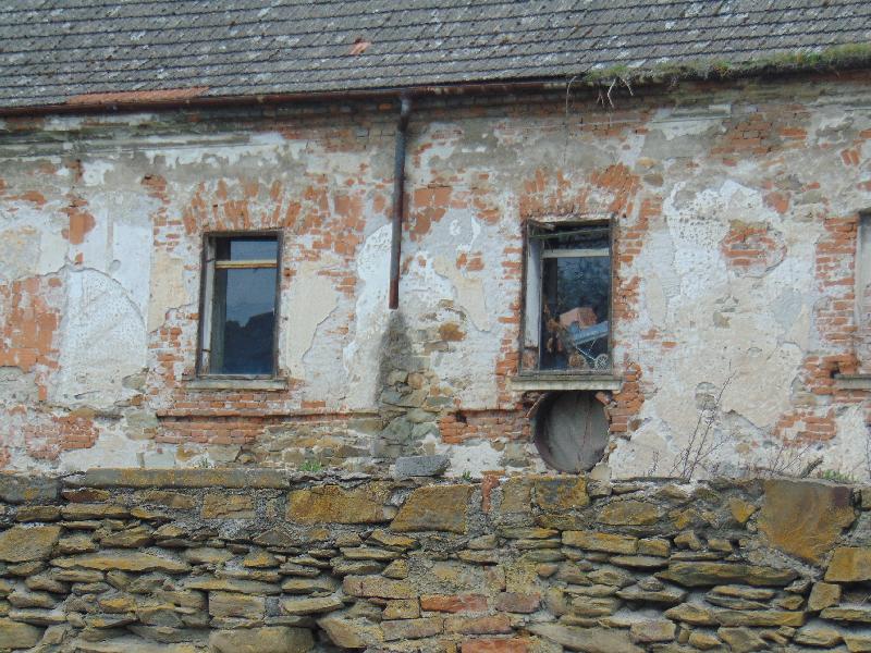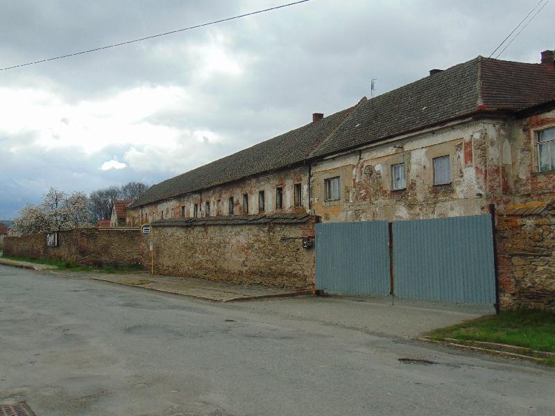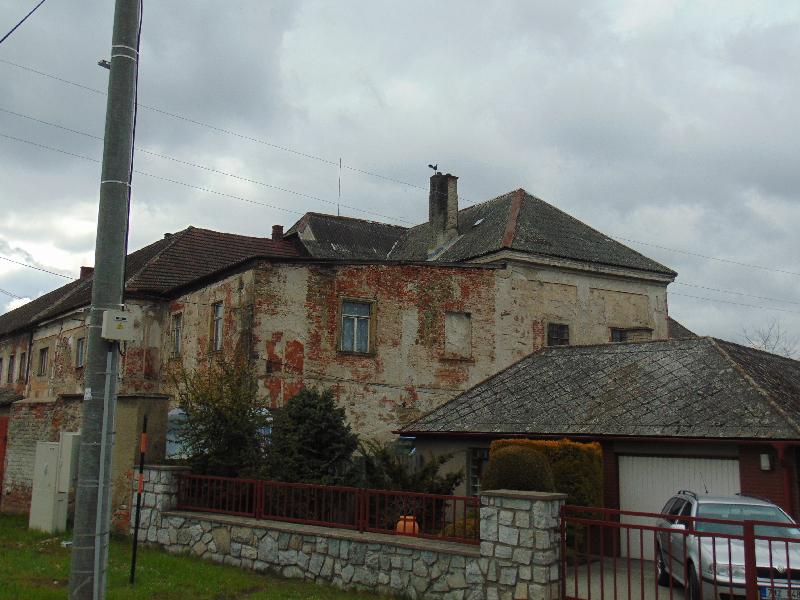 polozbořené hospodářské křídlo na levé straně směr do středu obce