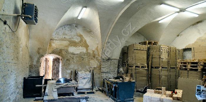 přízemí gotické tvrze dnes sloužící jako truhlářská dílna