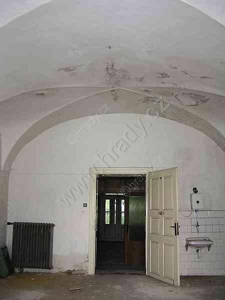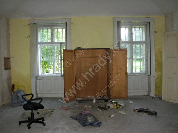 Místnosti zámku jsou již dnes vyklizeny a postupně připravovány na náročnou rekonstrukci - toto je připomínka původního stavu.