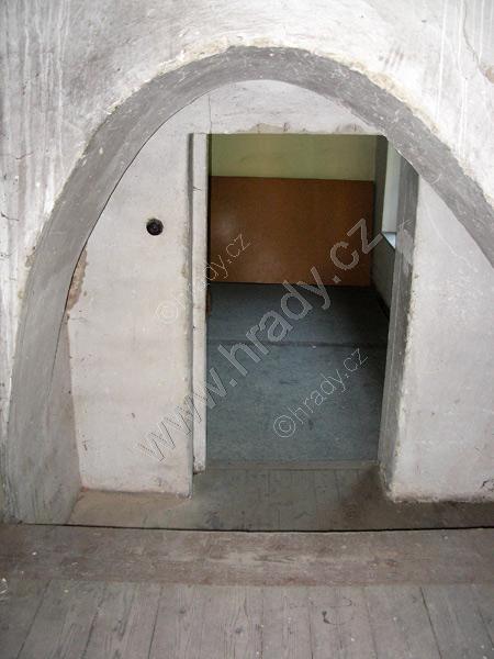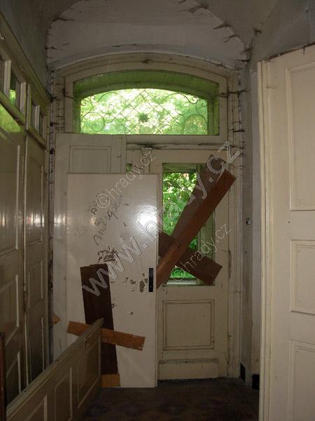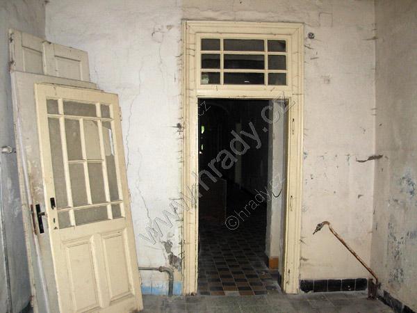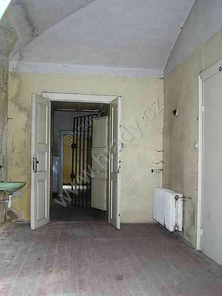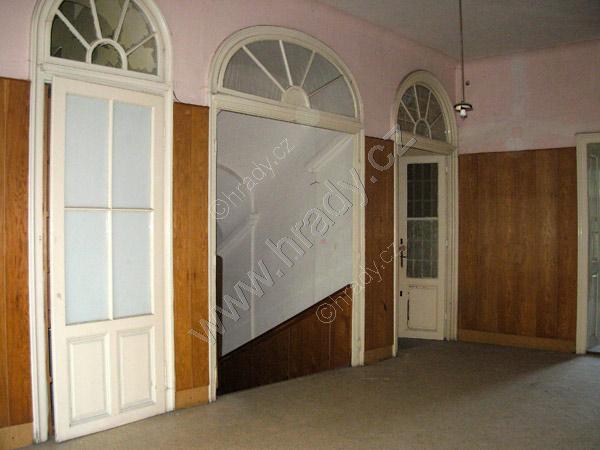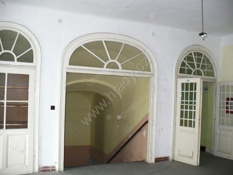 vlevo vestavěná skříň, ve středu vstup na schodiště do 1. patra, vpravo vstup do zámecké chodby