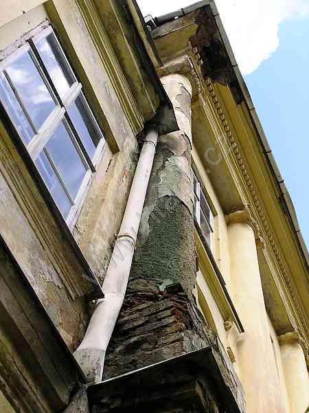 dešťová voda z okapů likviduje fasádu zámku