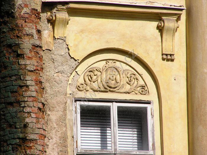 Detail zdobných šambrán oken