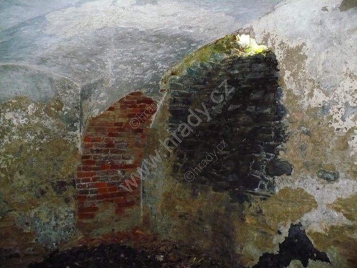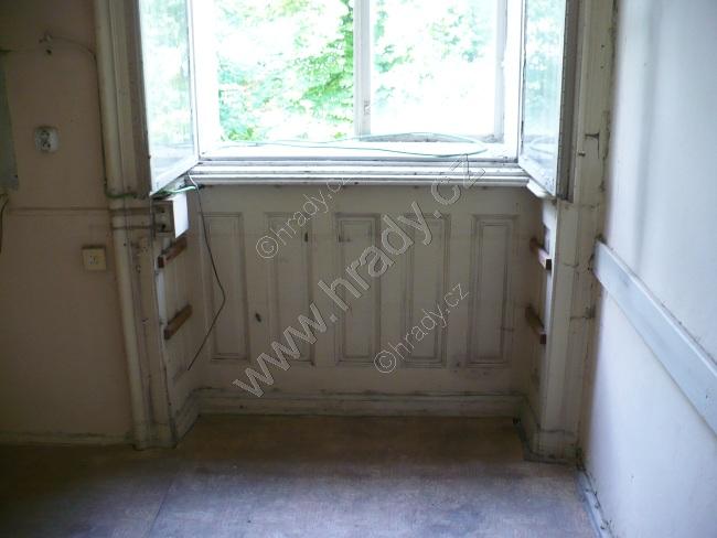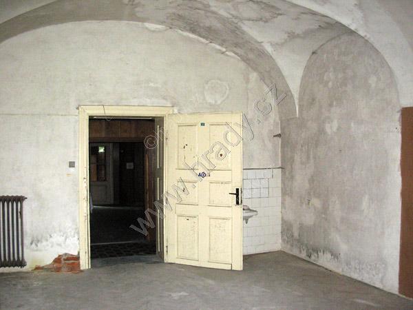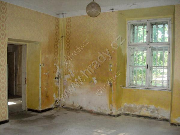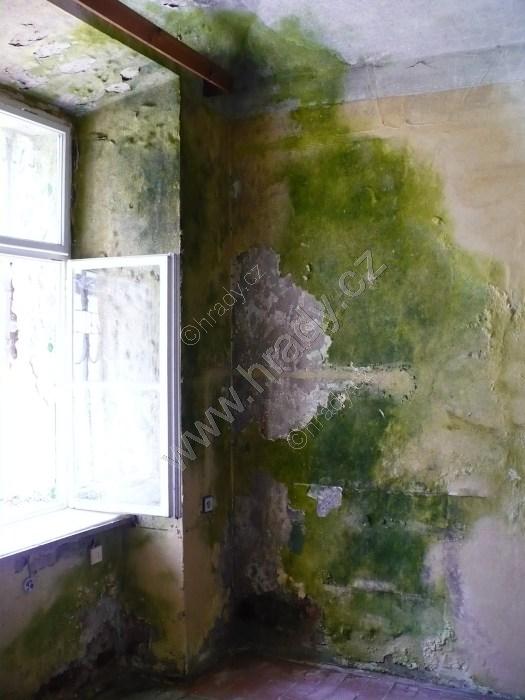 vlhkostí zasažená místnost v přízemí zámku