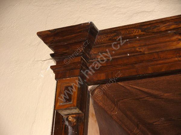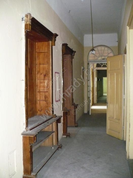 již pouze torza zbyly z okrasných zabudovaných vestavěných skříní v chodbě patra zámku