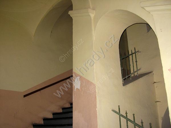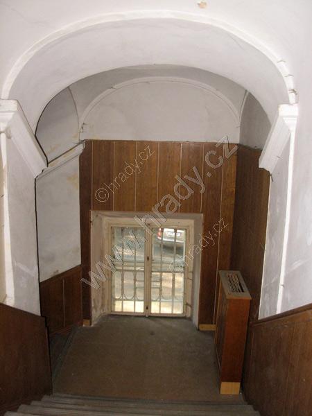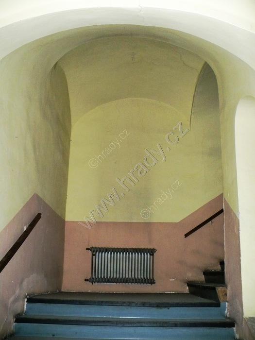 Pohled na schodiště vedoucí do přízemní části zámku.