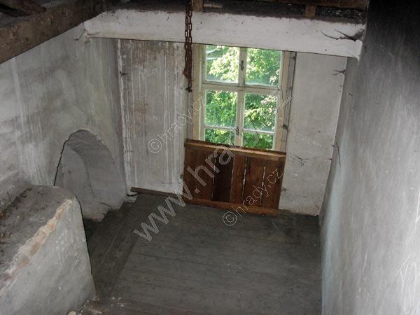zachované dřevěné obložení stavebního otvoru okna