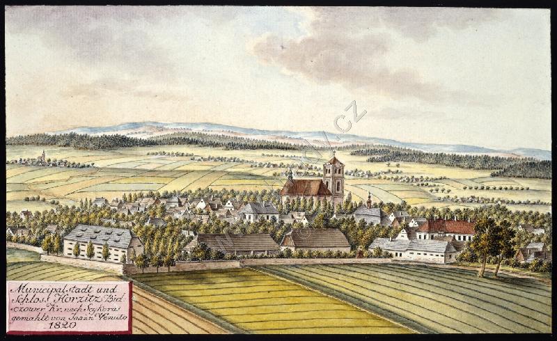 Celkový pohled na Hořice, I.A.Venuto, 1820