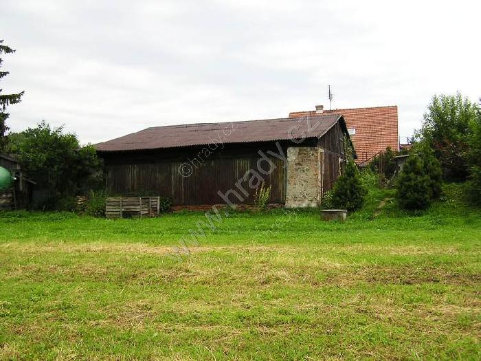 pohled od západu na hospodářskou budovu v zadní části bývalého dvora