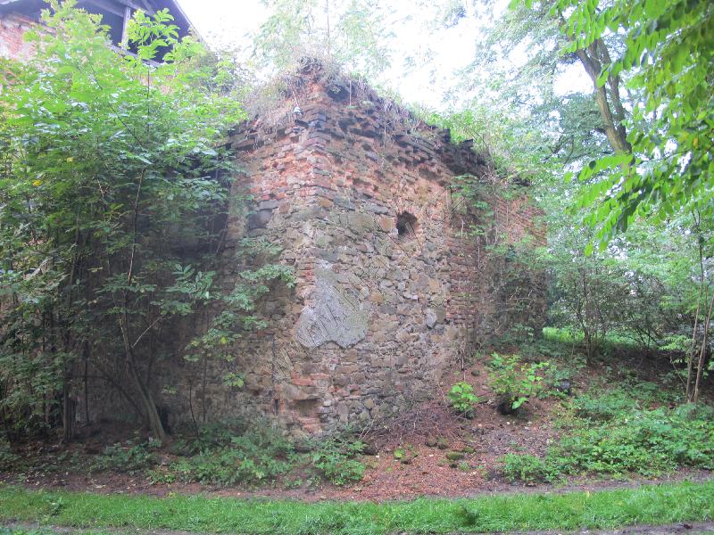 Vnitřní strana opěrné kamenné zdi bývalého areálu zámku
