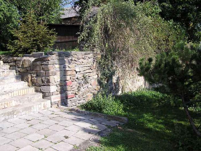 původní, zřejmě neopravovaný zbytek obvodové zdi