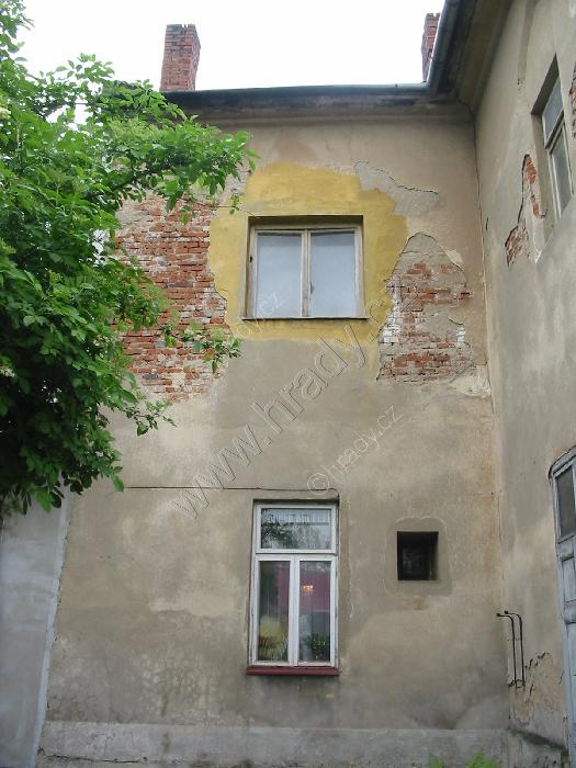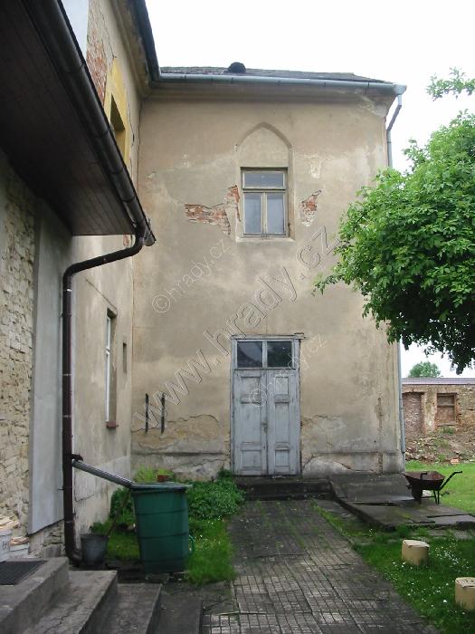 zámek s nově přistaveným domkem na místě původního bočního křídla