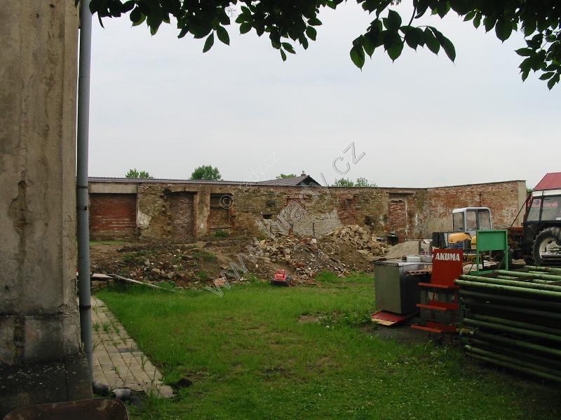 Zámek v r.2013,ještě s torzem původního přistavěného bočního křídla/za keřem viditelný jen kousek/
