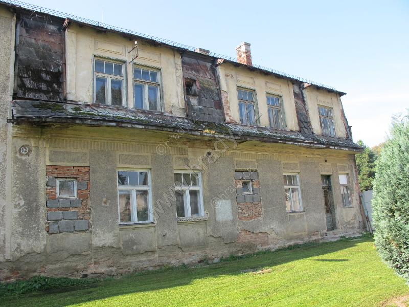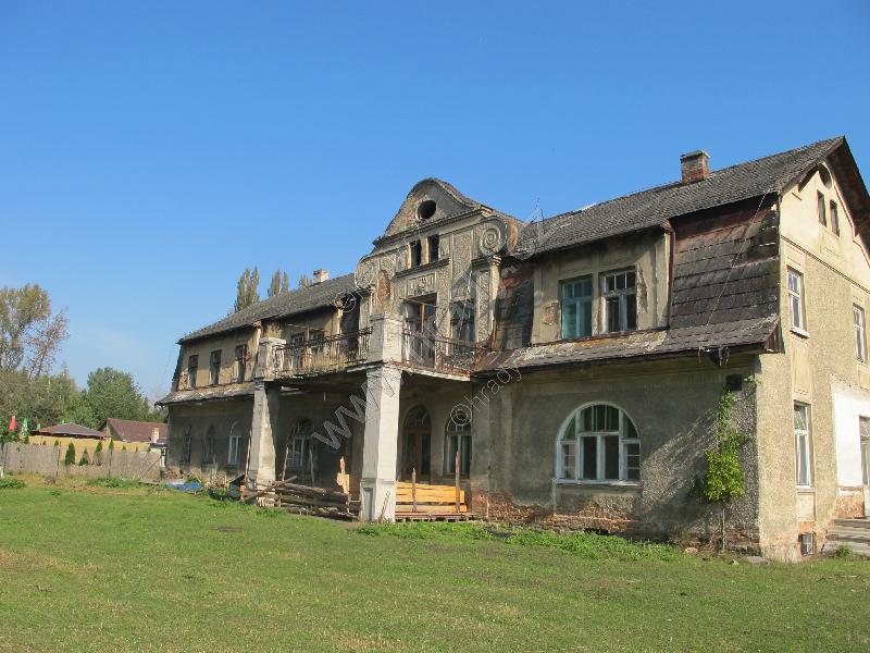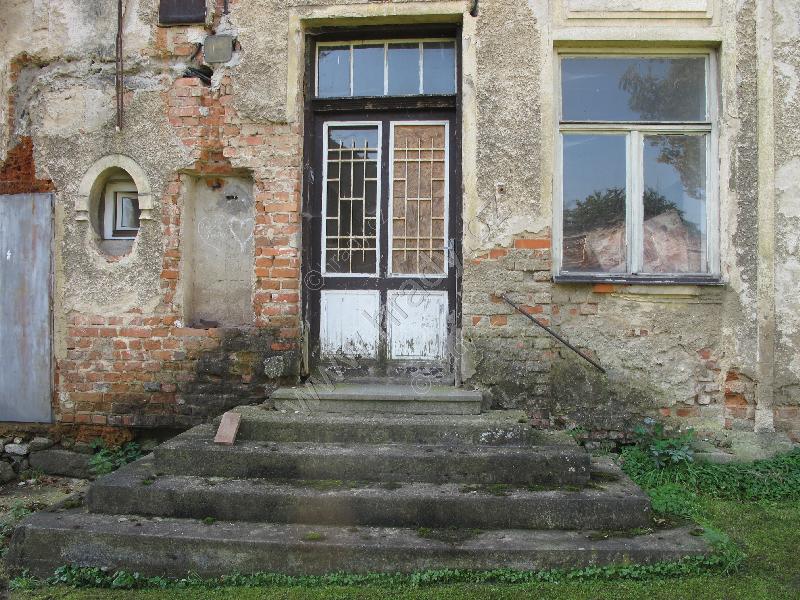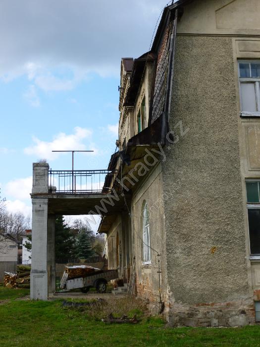 zdevastovaný balkón /ostatně jako celý zámek/,štít a letopočet 1919