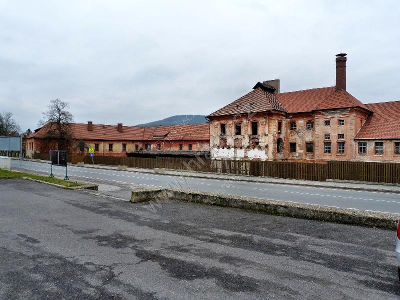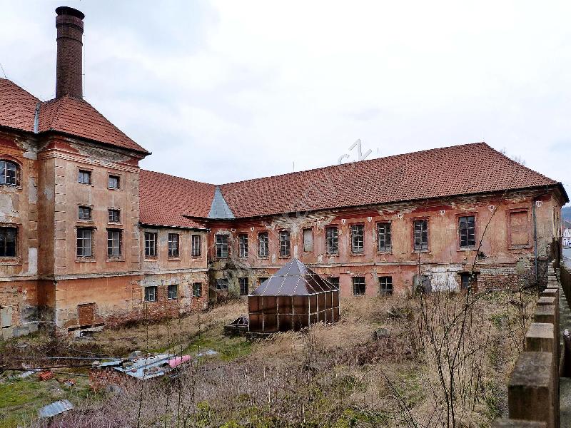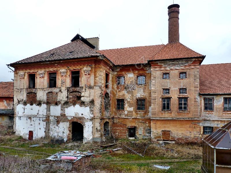 Roh severního (vlevo) a centrálního (vpravo) křídla zámku