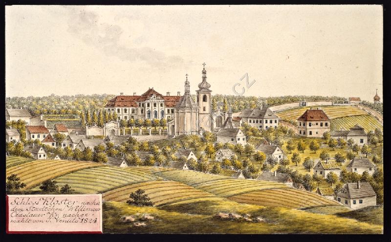 Město a zámek na obraze I.A.Venuta z roku 1824
