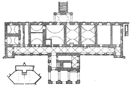 černě vyznačeno gotické zdivo, křížkovaně renesanční