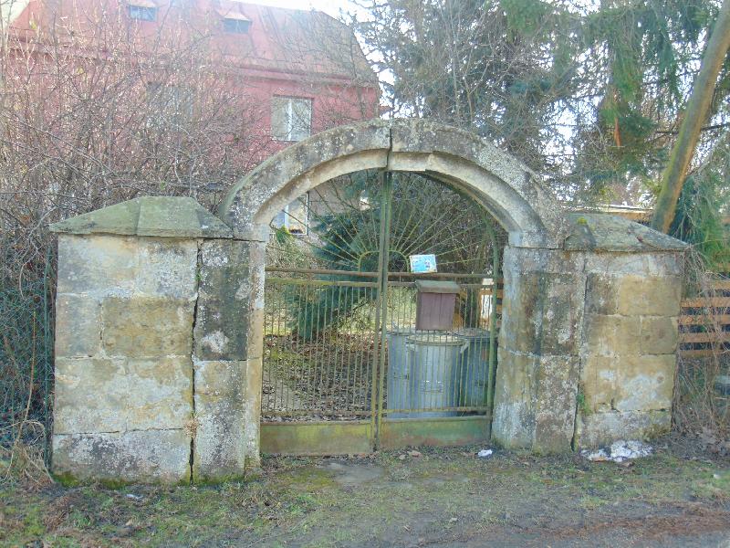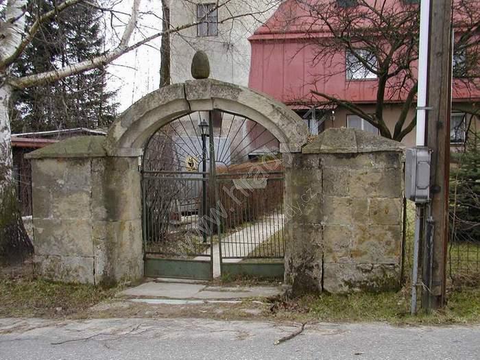 Kamenná jednoduchá branka s novodobými svařovanými vrátky
