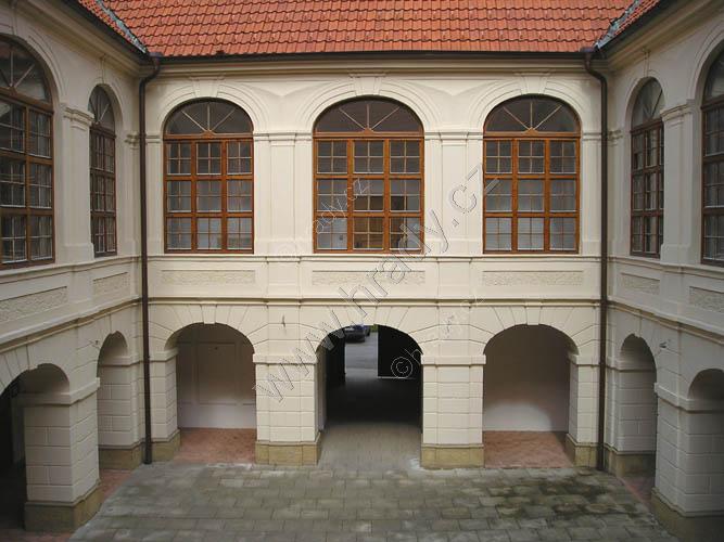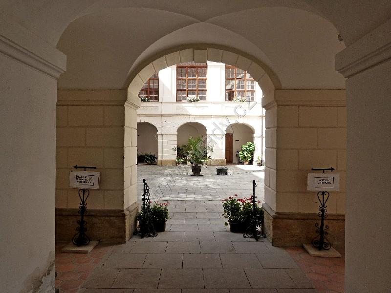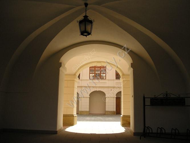 Konice - zámek - spojovací chodba zámku s kostelem Narození Panny Marie.