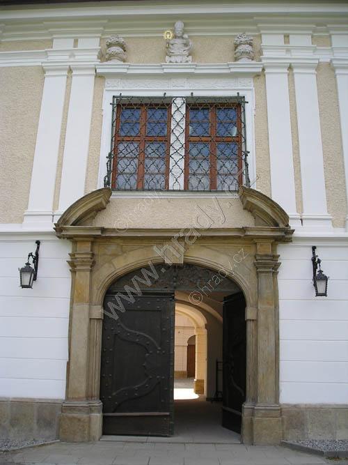 Konice - zámek - štuková výzdoba okna nad vstupem
