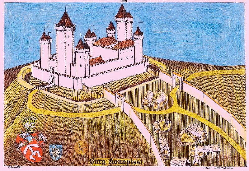 Konopiště na obrázku I.A.Venuta z roku 1814