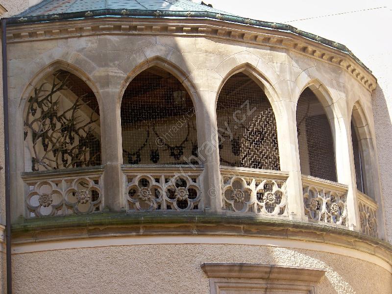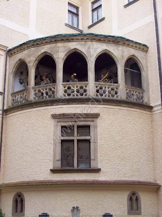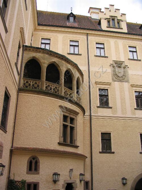 Detail ,,loveckého´´ balkonu z nádvoří zámku