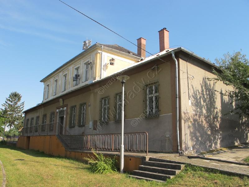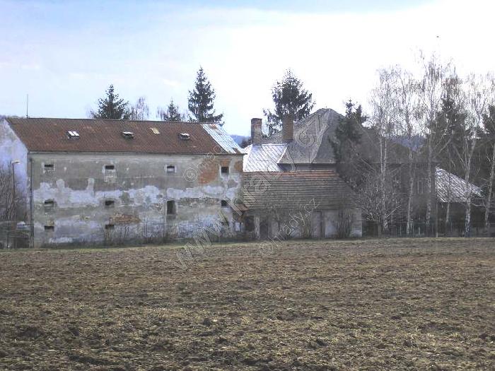 Areál koválovického dvora - vlevo sýpka, vpravo za stromy se skrývá zámek