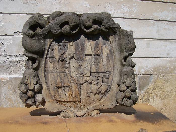 Láškov - erbovní znamení před zámkem