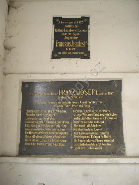 pamětní deska upomíná na návštěvu císaře Františka Josefa I.