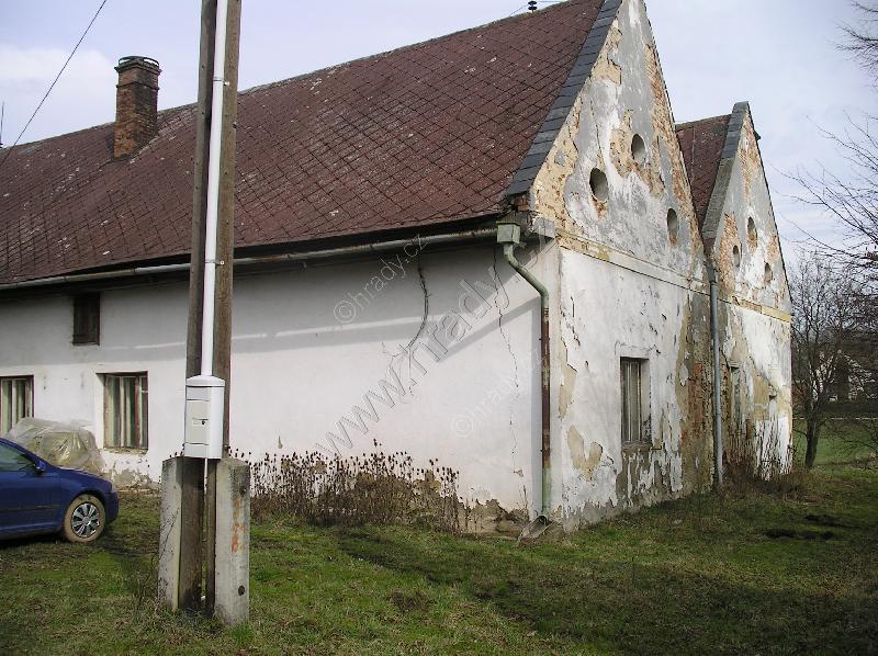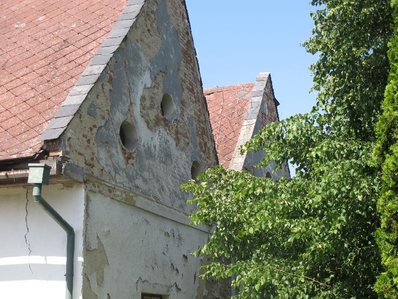 Napojení zámecké budovy /vpravo/ na budovu hospodářskou /vlevo/