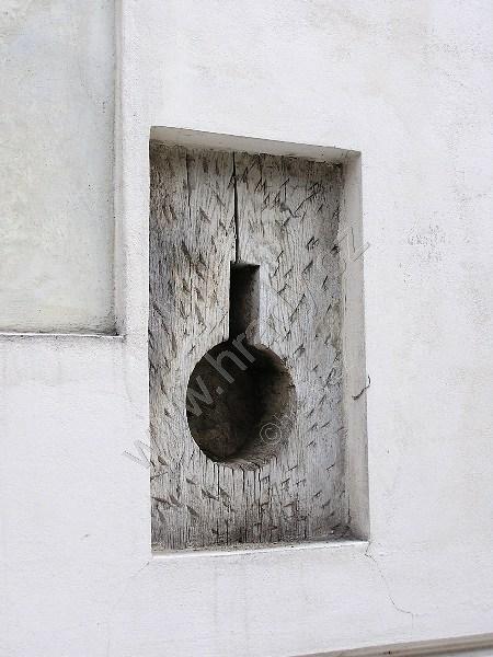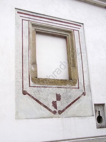 střílnový otvor odkrytý na fasádě zámku