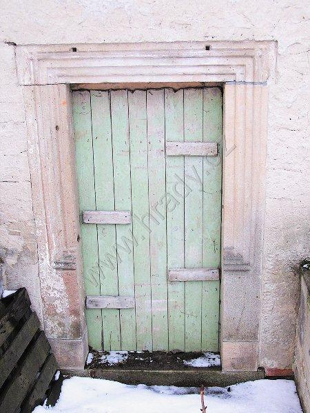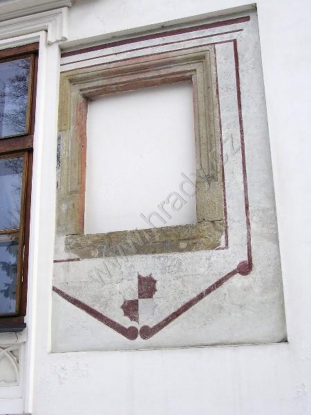 renesanční kamenné ostění a fresková výzdoba - pozůstatek bývalé renesanční tvrze