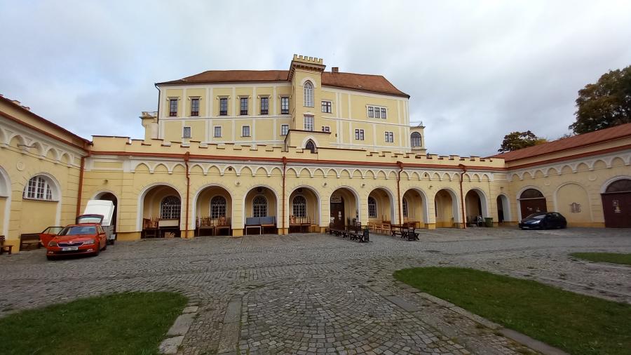 pohled na jížní fasádu z nádvoří zámecké jízdárny