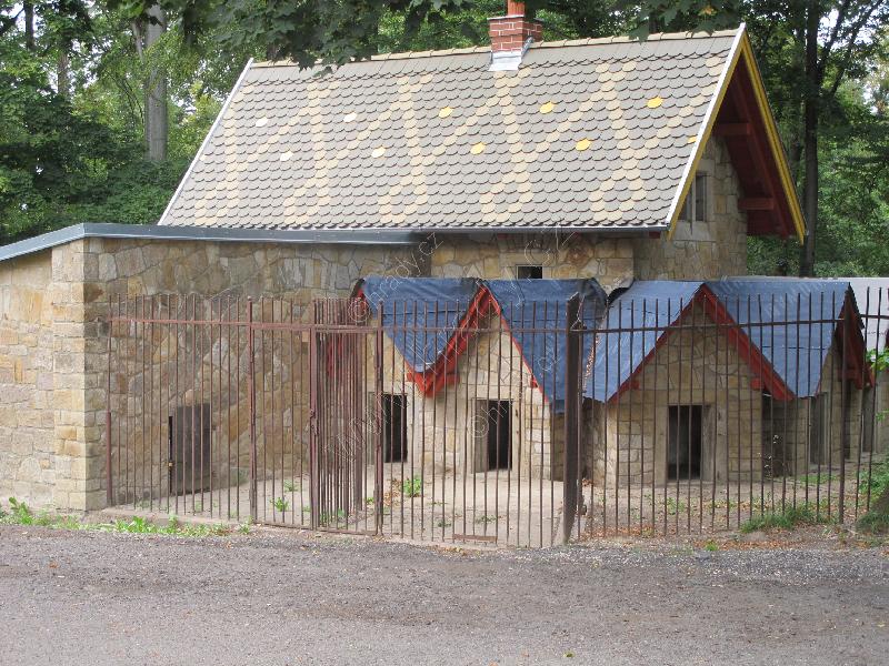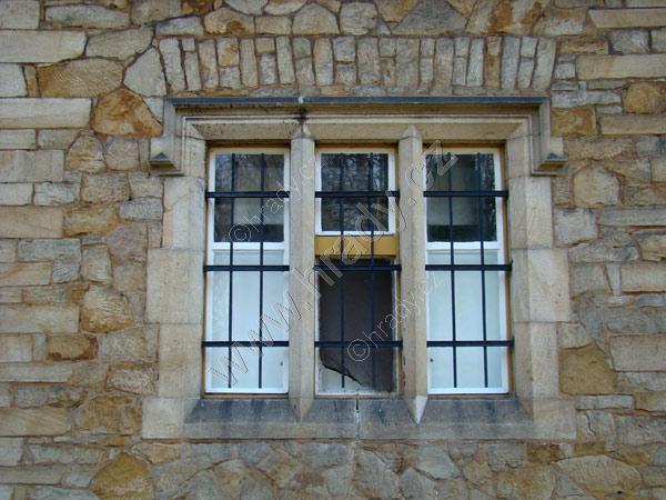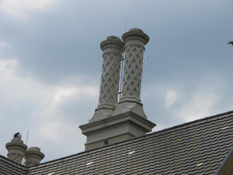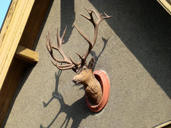 Detail plastiky jelena umístěného ve štítě zámečku.