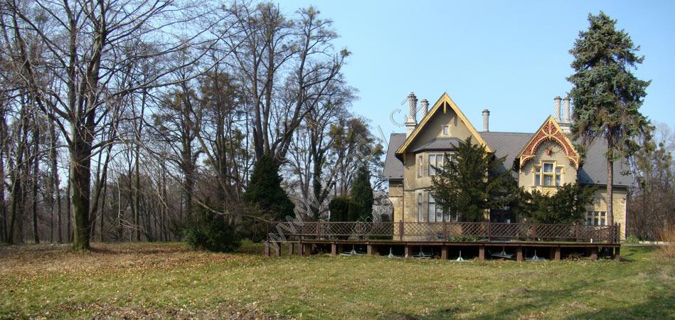 Pohled na Lovecký zámeček, který je obklopen zámeckým parkem.