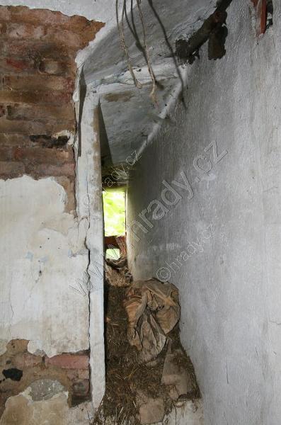 Střílnové okénko původní tvrze, dochované v severní místnosti přízemí zámku