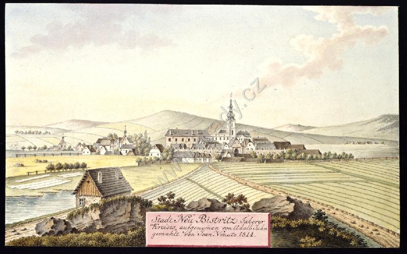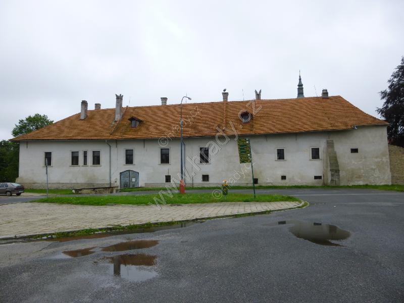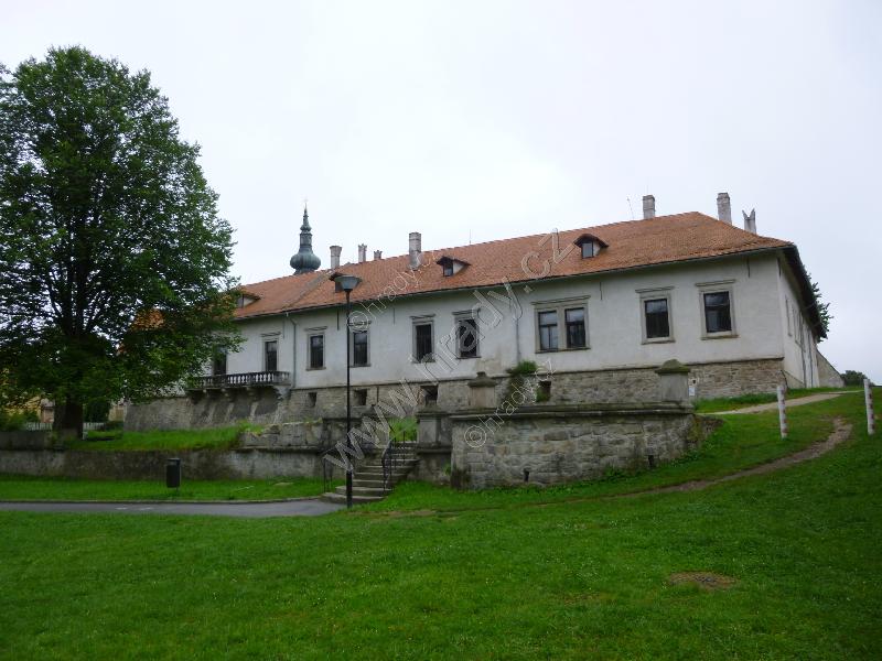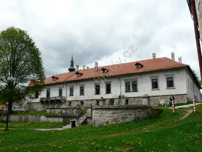 Zámek v Nové Bystřice se zbytkem středověké hradby